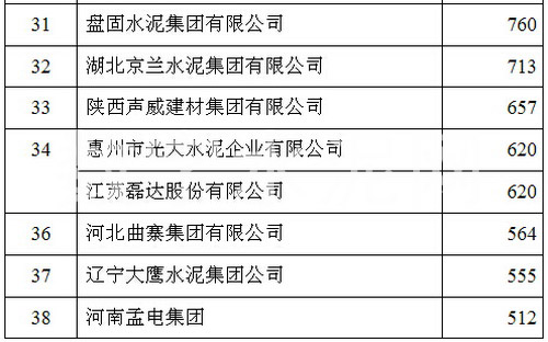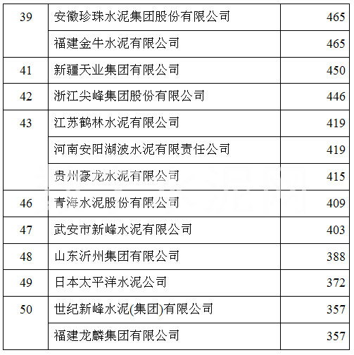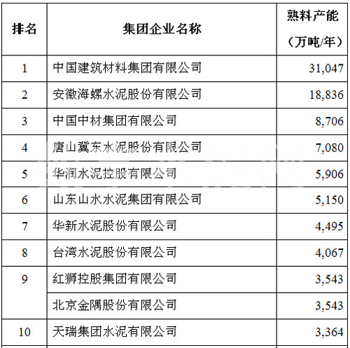 在2015’中國(guó)國(guó)際水泥峰會(huì)上,中國(guó)水泥協(xié)會(huì)公布了2015年全國(guó)水泥熟料產(chǎn)能前50家企業(yè)排名,中國(guó)建材以3.1億噸的年熟料產(chǎn)能位居榜首,海螺水泥、中材集團(tuán)分別以1.88億噸和8706萬噸的年熟料產(chǎn)能位列第二和第三,亞泥(中國(guó))位列第十二位。