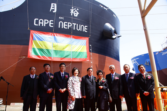 裕民航運(yùn)新加坡子公司委托中國(guó)最大船廠──上海外高橋造船公司,建造206,000載重噸海岬型散裝貨輪「裕月輪」(M.V. “Cape Neptune”),于4月22日假上海市外高橋船廠完成命名接船典禮,典禮由遠(yuǎn)東集團(tuán)徐旭東董事長(zhǎng)親自主持,并邀請(qǐng)?jiān)蜚y行大中華區(qū)主席曾璟璇女士,擔(dān)任裕月輪之命名夫人。